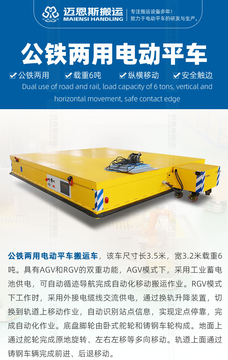 這是一臺廣東某造船廠訂購差速舵輪全向移動大型電動平車搬運車,該車長度13米寬3米...