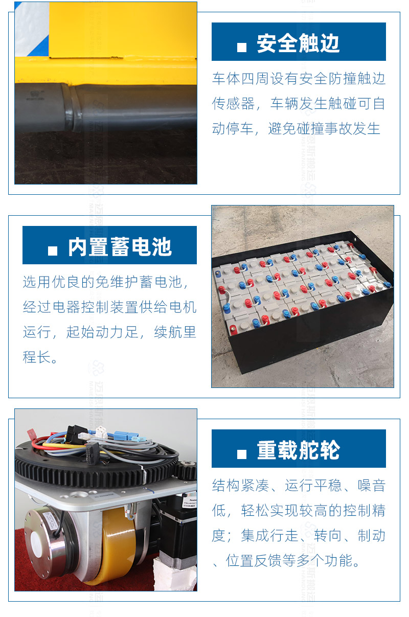 這是一臺磁導航重型AGV客戶使用現(xiàn)場,整車長度4.5米,寬2.8米,高90厘米,...